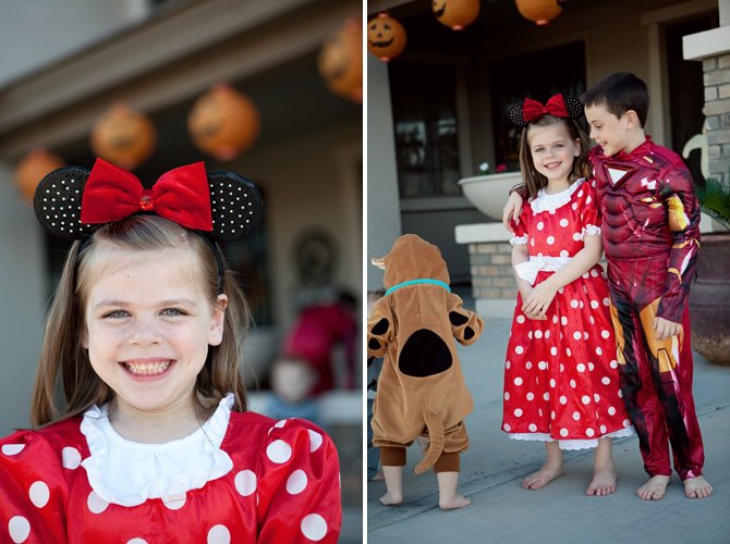 We had Iron Man, Minnie, Batman, and Scooby this year. Scooby ran from the camera so I only got to see the backside to prove he was here. He was cute though. Trust me.