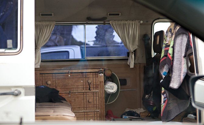 on a side note, see that car next to us? it is a classic surfer's mode of transportation. dallin looked inside and saw the old school curtains, dresser, a fold out bed, and all kinds of other interesting stuff. he had only one thing to say…